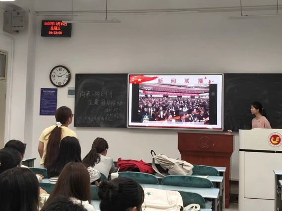 此次十月主题团日活动,我院进行交流分享和“团委书记进支部”等固定环节,邀请了我院团委书记郑婧老师深入团支部进行宣讲,围绕学习主题积极开展学习交流讨论,其次我院还邀请了今年暑期社会实践的优秀学生代表进入新生团支部分享经验与心得,帮助新生深入了解如何开展社会实践,并采用“主讲+帮讲”的形式,鼓励支部创新团日形式,丰富团日内容,践行团日主题。