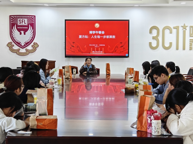 2025年11月14日中午,我院在人文楼522会议室举办了“博学午餐会”活动。本次活动邀请到研究生外语教学部主任夏方耘老师担任主讲嘉宾。她以“人生每一步都算数”为主题,与到场同学们进行了一场关于成长、选择与人生价值的深度对话。