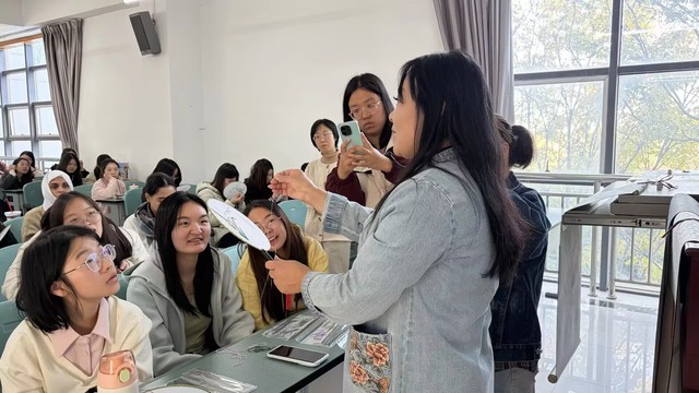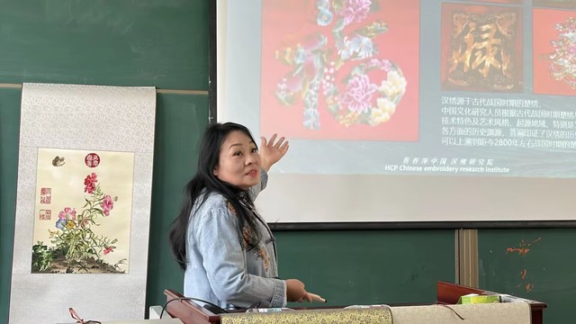 传承非遗文化,感受传统技艺魅力。11月27日下午,汉绣非遗文化体验讲座在人文艺术楼418顺利开展。本次讲座特邀国家级非遗汉绣代表性传承人、国家级刺绣裁判、武汉市政协委员黄春萍老师主讲。来自全校的138名师生踊跃报名参加。10名国际留学生受邀参加了活动,一同近距离领略汉绣的独特韵味。