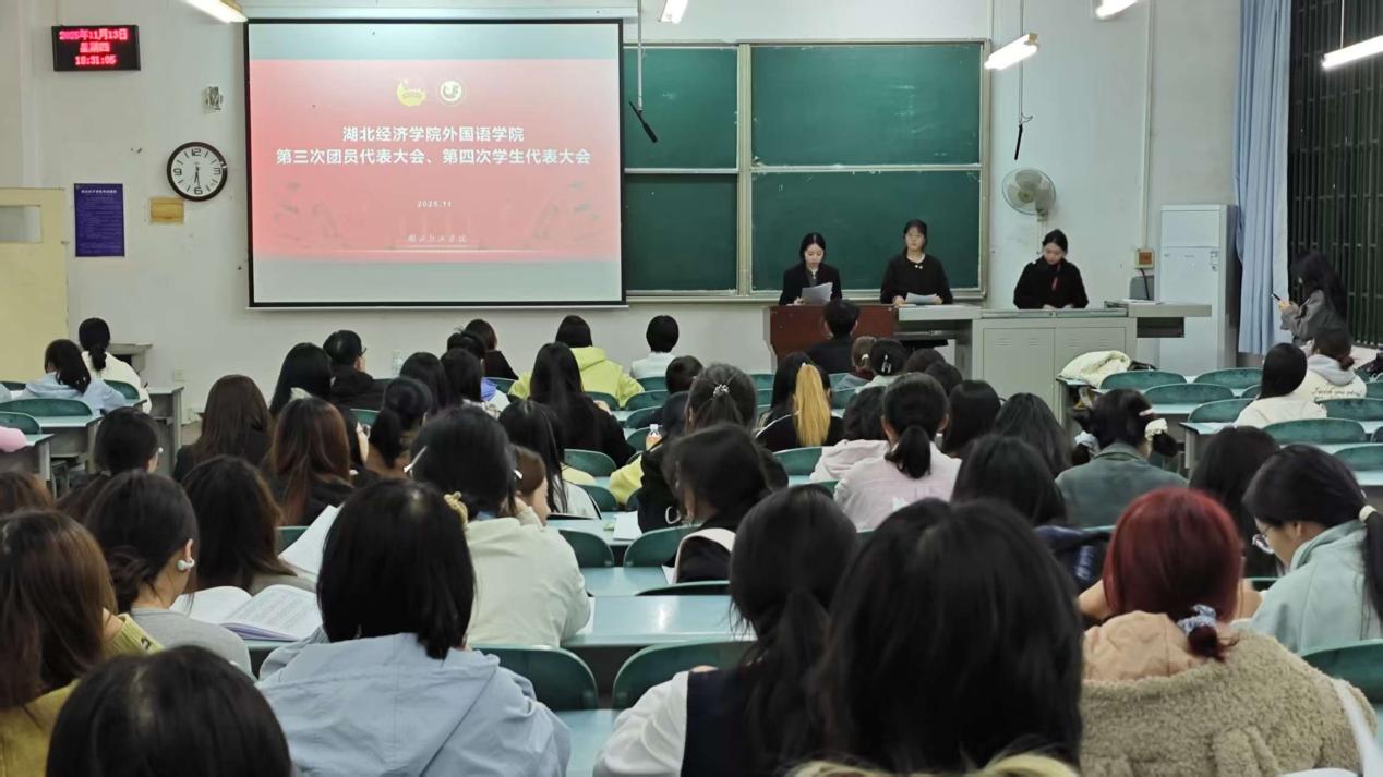 2025年11月13日,外国语学院第三次团员代表大会、第四次学生代表大会(以下简称“团学代会”)在J1-101隆重举行。全体代表齐聚一堂,共商学院团学工作发展大计。