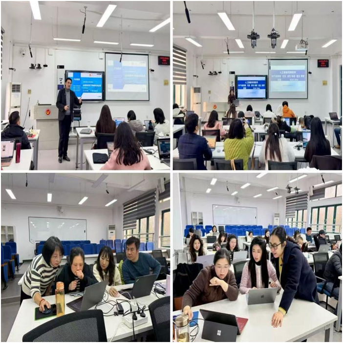 本次培训采用“理论精讲+案例共创+项目实训”相结合的沉浸式教学模式。专家们将前沿技术转化为清晰易懂的操作方案,参训教师带着教学实际需求深入研讨、动手实操,在交流中激发思路,在实践中提升技能,实现了从“了解AI”到“熟练应用AI”的能力转型,进一步凝聚了跨学科教研合力。