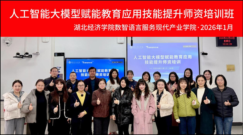 【本报讯(记者范冬梅)】为深入贯彻国家教育数字化战略部署,积极对接学校“新财经”改革任务,全面提升教师数字化教学与科研能力,2026年1月17日至18日,湖北经济学院外国语学院数智语言服务现代产业学院与传神语联国家语言服务出口基地联合举办“AI大模型教育应用进阶特训班”。本次培训在前阶段AI基础培训基础上进一步升级,邀请章瑾、孙玉昕、李亚楠、杨俊超四位行业专家授课,聚焦“教学赋能、科研提质、产业对接”三大维度,助力骨干教师实现数字素养跨越式提升。