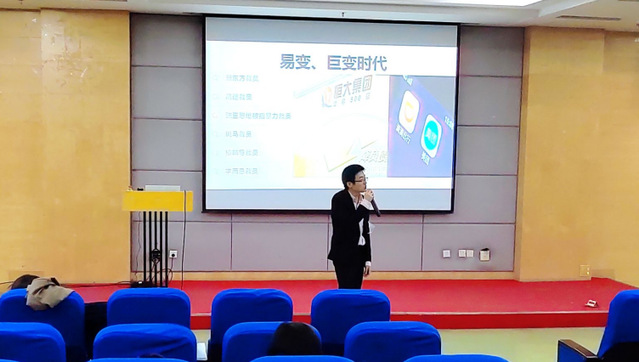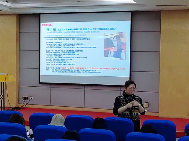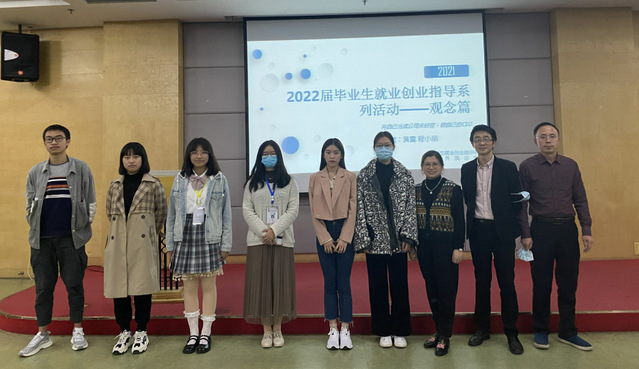 会议开始,宋灵老师先简明引入了本次会议的主题——认识自我,随后,由程小丽老师为大家讲解当今复杂多变的就业形式。她指出,受雇于人是有风险的,有强大的就业力才是安全的。并由此进一步对大家的职业生涯规划方向进行了系统多方面的指导。会上,程老师采用言语、事例与图片相结合的方式,亲切地与同学们展开互动交流。接着,黄雷老师上台进一步阐述了核心竞争力的重要性,并用b站知名up主何同学的生动事例给迷茫的学子们指明了方向,他结合当今就业情况和外院学生就业现况为学子们呈现了清晰的就业路径,并以幽默风趣又一阵见血的讲话赢得同学们的热烈反响。然后,程小丽老师上台为同学进一步答疑解惑,提出了许多有针对性的建议。最后,各位嘉宾老师与优秀学生代表合影留念,并对学子们表达了殷切希望和美好祝福。
