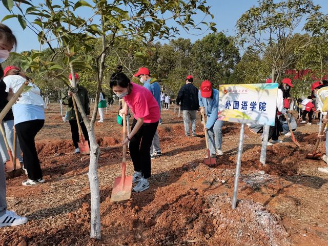 本网讯(通讯员:丁甜甜 许承强)沐浴着春风,陶醉于花香,湖北经济学院一年一度的植树节如期而至。3月12日,湖北经济学院在知行楼腾龙大道南侧举行了以“大美经院,人人共建”为主题的2022年植树活动,外国语学院王瑾老师指导的第二课堂低碳经济双语实验室全体成员与外国语学院青年志愿者协会为我校载种了20棵桂花树。外国语学院党委副书记李勇全程指导我院学子参与本次活动。